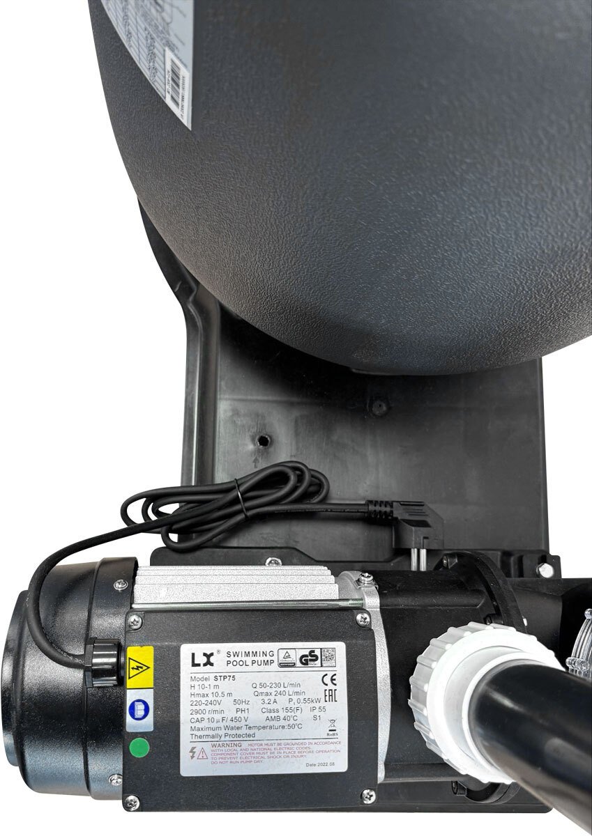 Фільтраційна установка Aquaviva D450-STP75 – це пісочна система очищення води з верхнім типом під'єднання. Призначена для обслуговування приватних басейнів об'ємом до 32 000 літрів. Корпус фільтра виконаний із високоміцного поліетилену, а насоса – із термопластику. Установка комплектується клапаном на 6 режимів, манометром та універсальними сполучними муфтами. Продуктивність: 8 м³/год Потужність насоса: 0.55 кВт З'єднання: 50 мм Завантаження піску: 45 кг